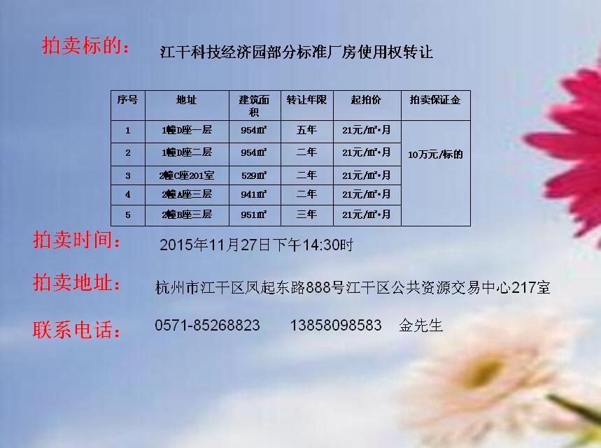 江干科技經濟園部分標準廠房使用權轉讓