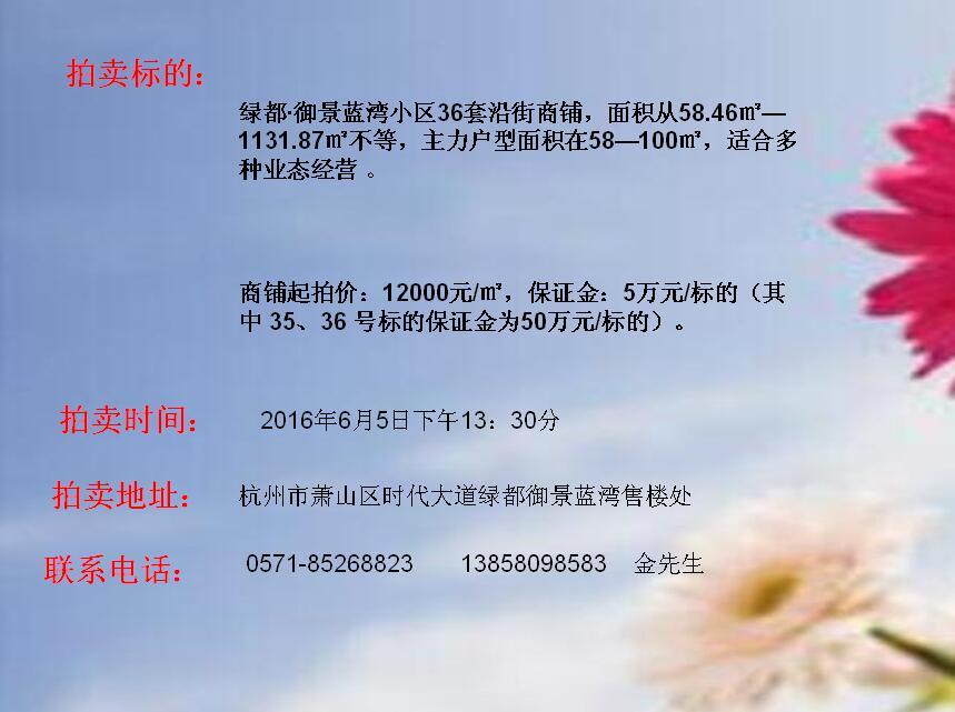 綠都•御景藍灣商鋪拍賣
