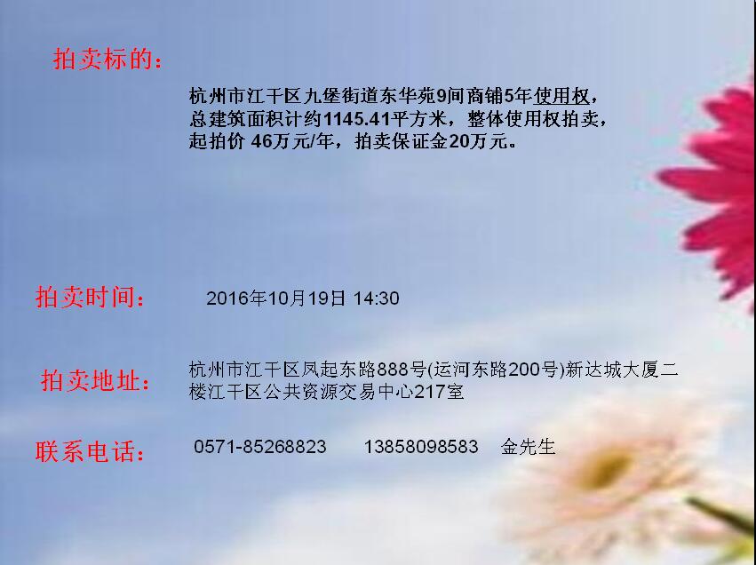 江干區(qū)九堡街道東華苑部分商鋪5年使用權轉讓拍賣