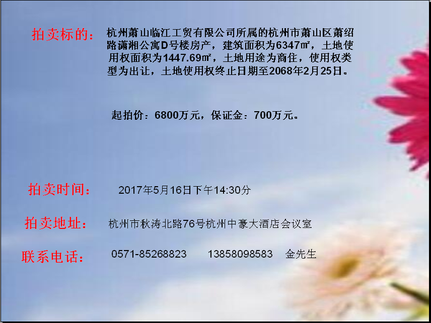 永盛拍賣熱線:0571-85268823 在線留言 | 收藏本站