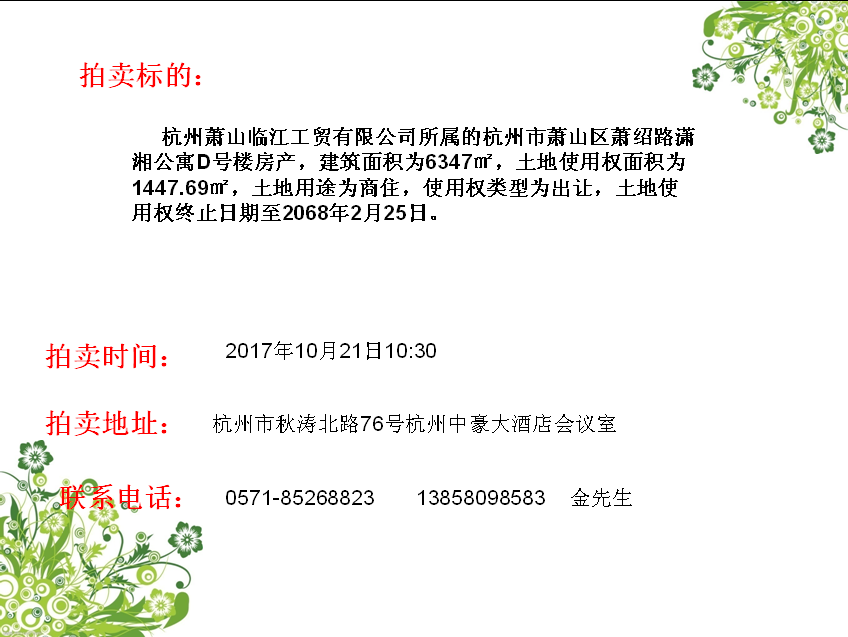 永盛拍賣熱線:0571-85268823 在線留言 | 收藏本站