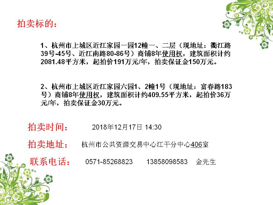 杭州市上城區(qū)近江家園一園、六園 部分商鋪8年使用權(quán)轉(zhuǎn)讓