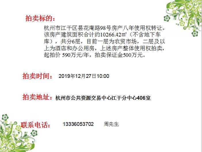 杭州市江干區(qū)曇花庵路98號房產(chǎn)八年使用權(quán)轉(zhuǎn)讓