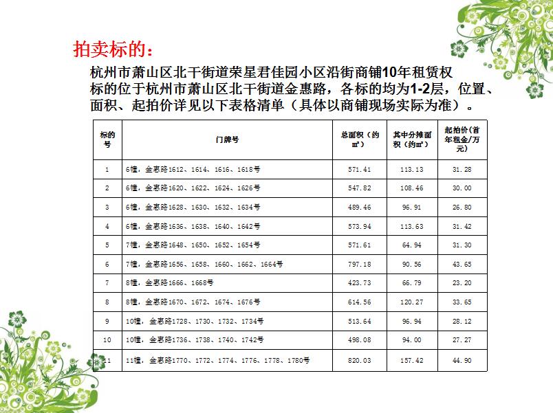 杭州市蕭山區(qū)北干街道榮星君佳園小區(qū)沿街商鋪10年租賃權(quán)