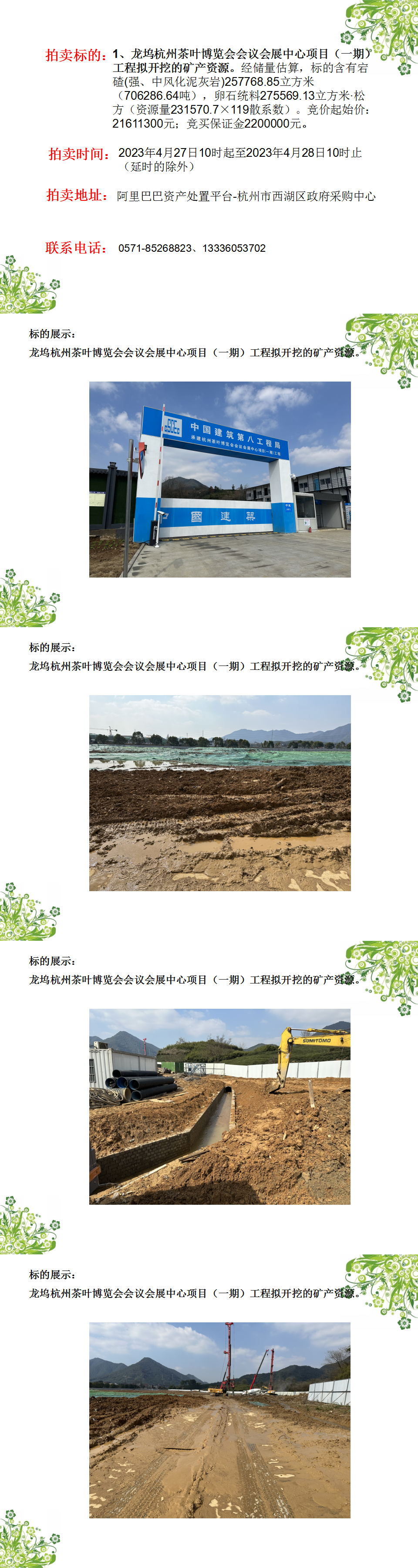 龍塢杭州茶葉博覽會(huì)會(huì)議會(huì)展中心項(xiàng)目(一期)工程擬開(kāi)挖的礦產(chǎn)資
