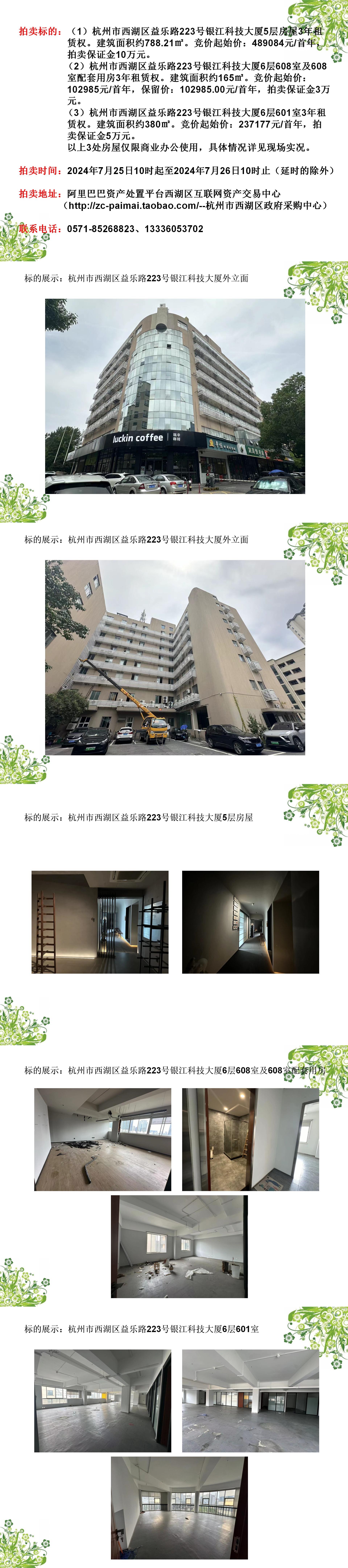 杭州市西湖區(qū)益樂路223號銀江科技大廈3處房產(chǎn)3年租賃權(quán)拍賣