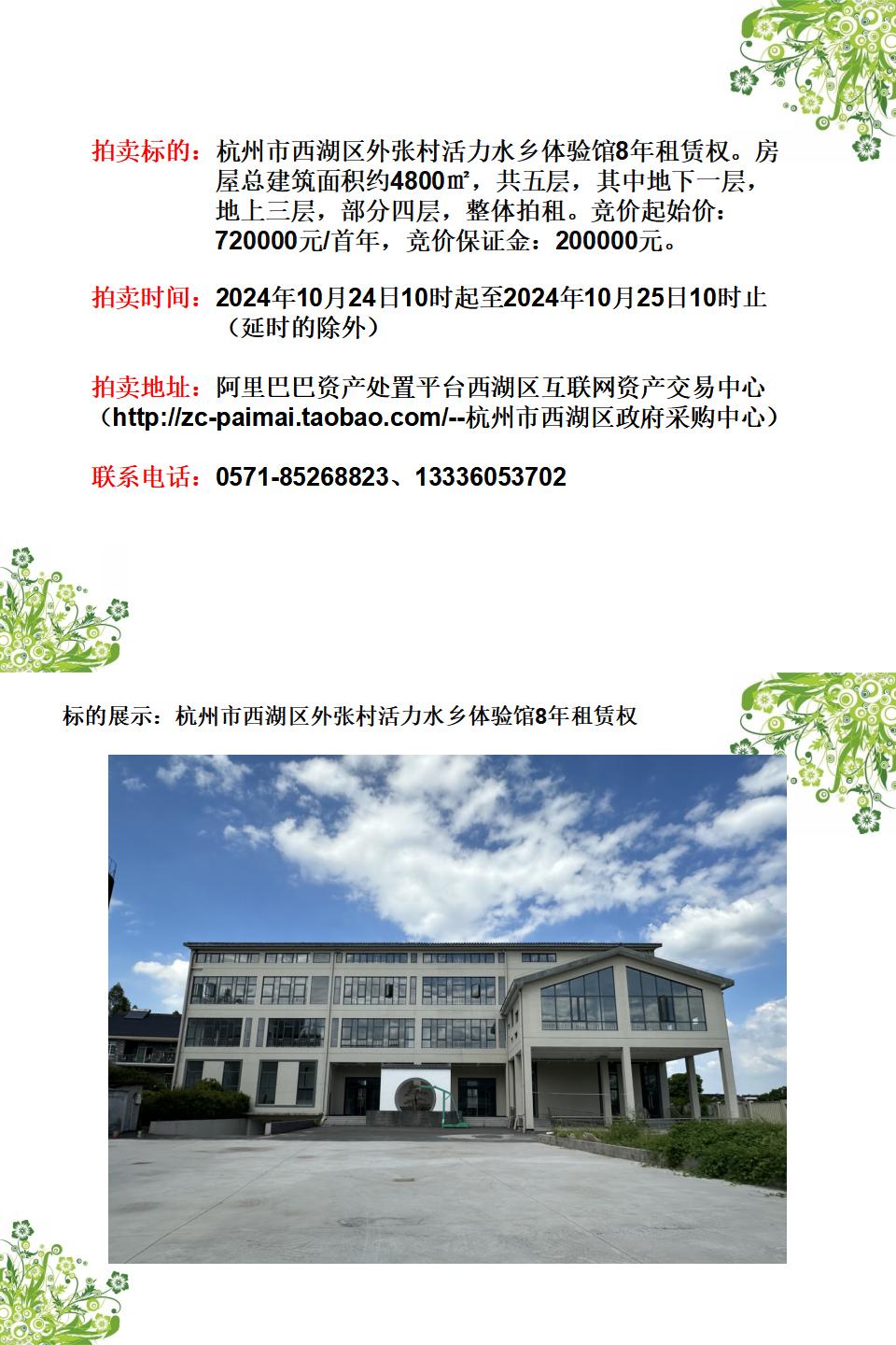 杭州市西湖區(qū)外張村活力水鄉(xiāng)體驗(yàn)館8年租賃權(quán)