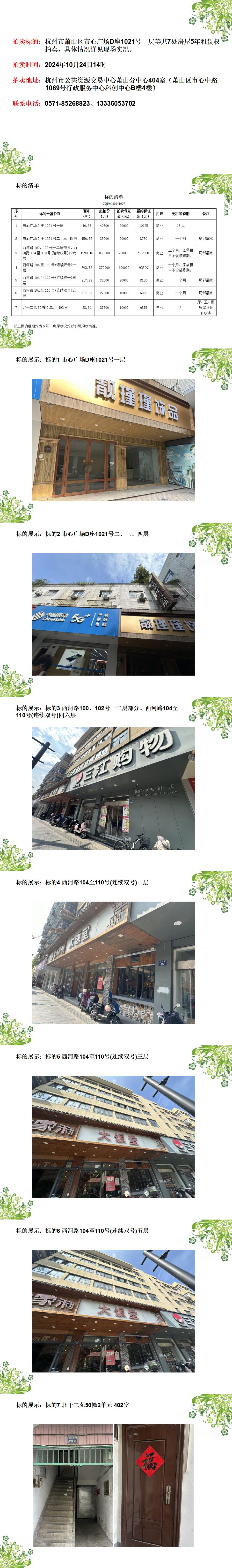 杭州市蕭山區(qū)市心廣場D座1021號一層等共7處房屋5年租賃權