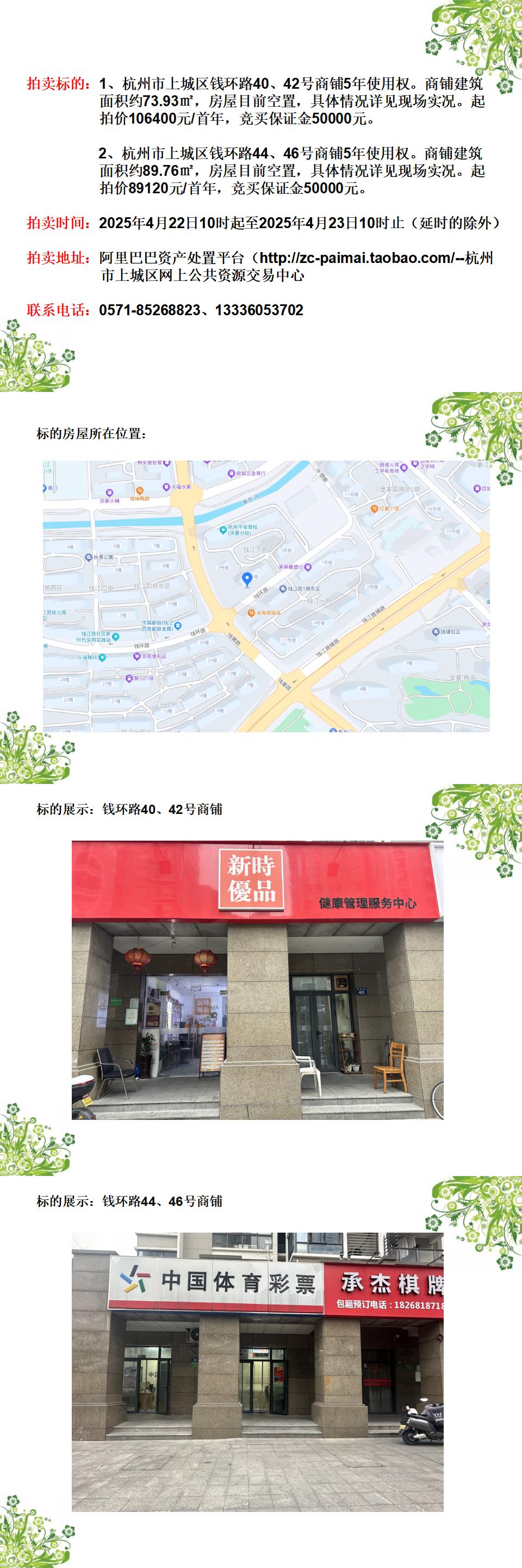 杭州市上城區(qū)錢環(huán)路2處商鋪5年使用權(quán)