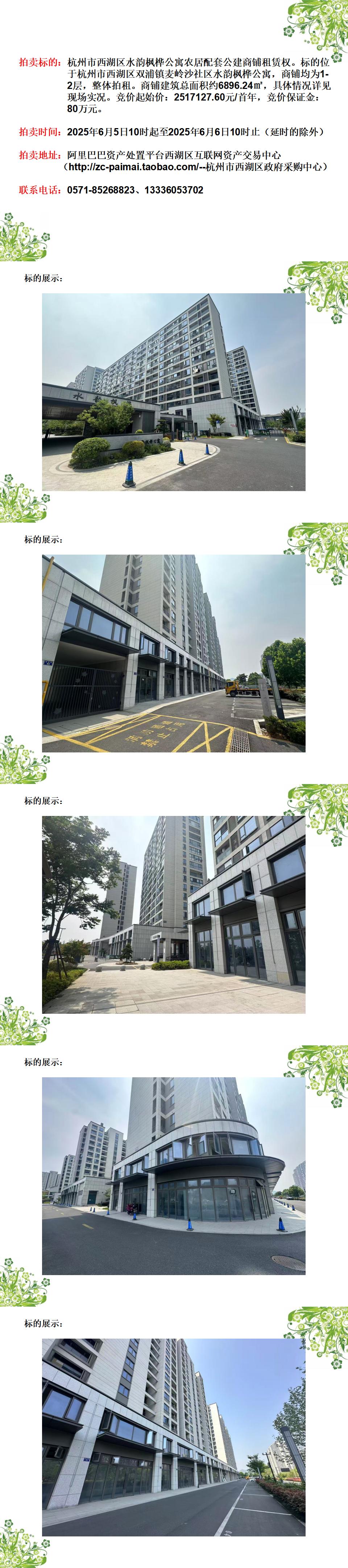 杭州市西湖區(qū)水韻楓樺公寓農(nóng)居配套公建商鋪?zhàn)赓U權(quán)