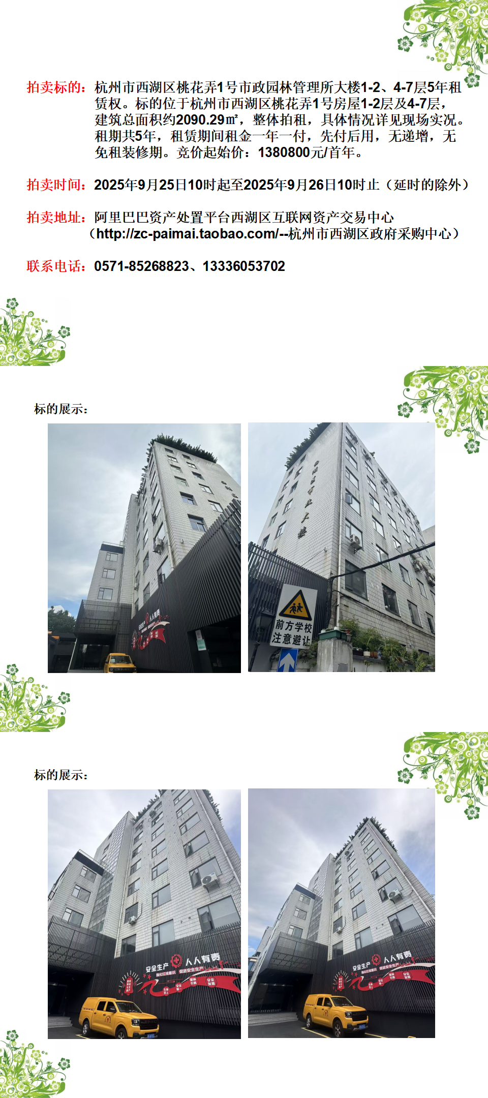 西湖區(qū)桃花弄1號(hào)市政園林管理所大樓1-2、4-7層5年租賃權(quán)